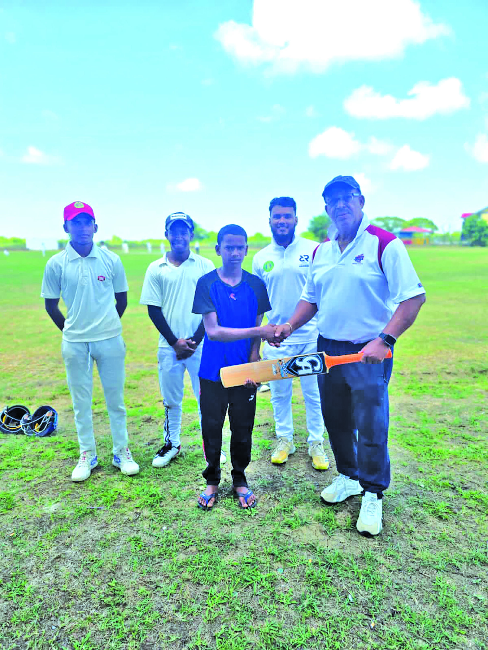 At a simple presentation done recently, the Lower Corentyne Secondary School student and Albion Cricket Club player, collected his bat from Hubern Evans, former national senior cricketer and coach. Young Ramsarack was encouraged to work hard on his game and to stay in school. He expressed gratitude and promised to heed the advice.