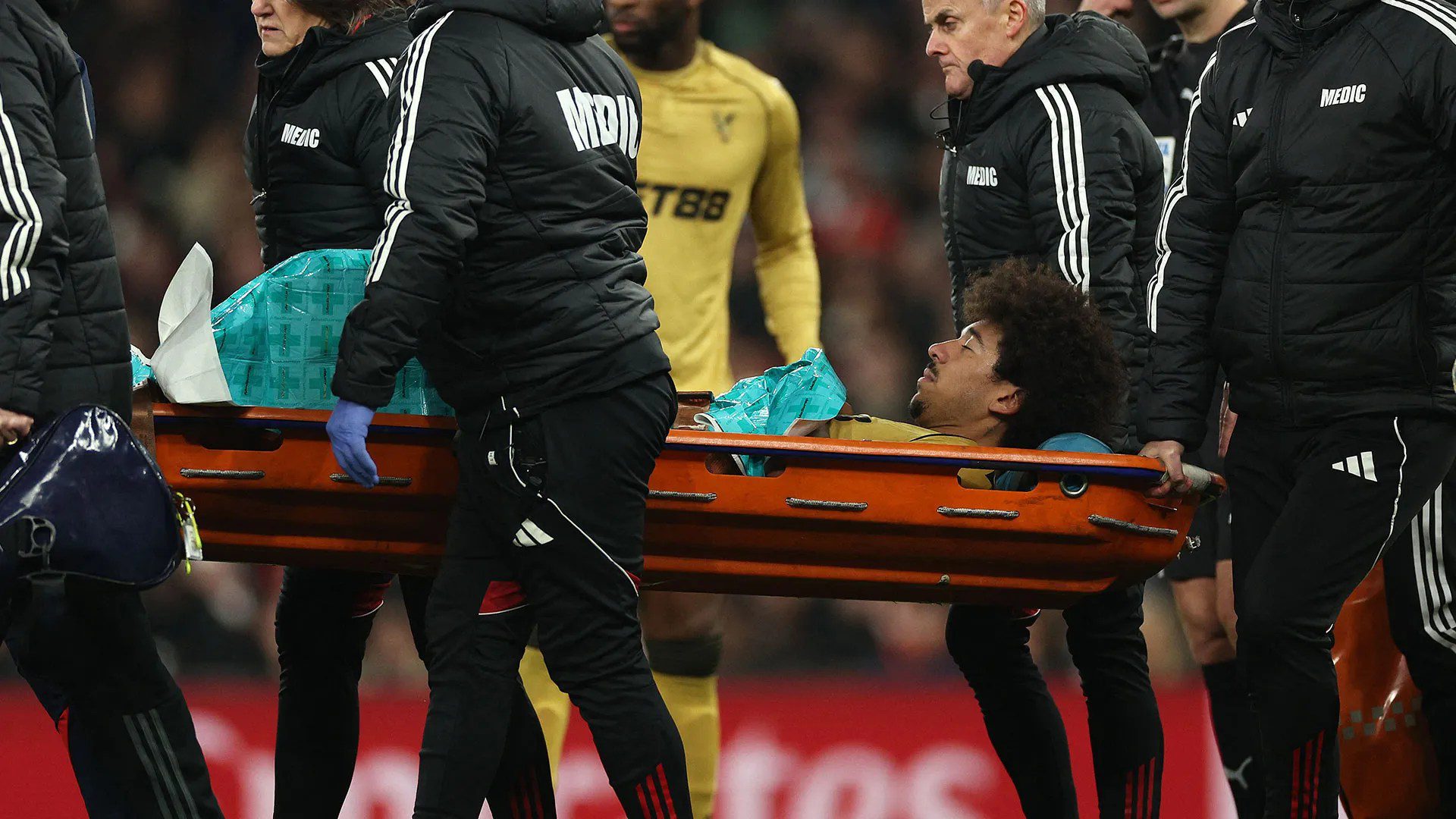 And he was eventually taken off on a stretcher – which will come as a significant concern for boss Oliver Glasner.
