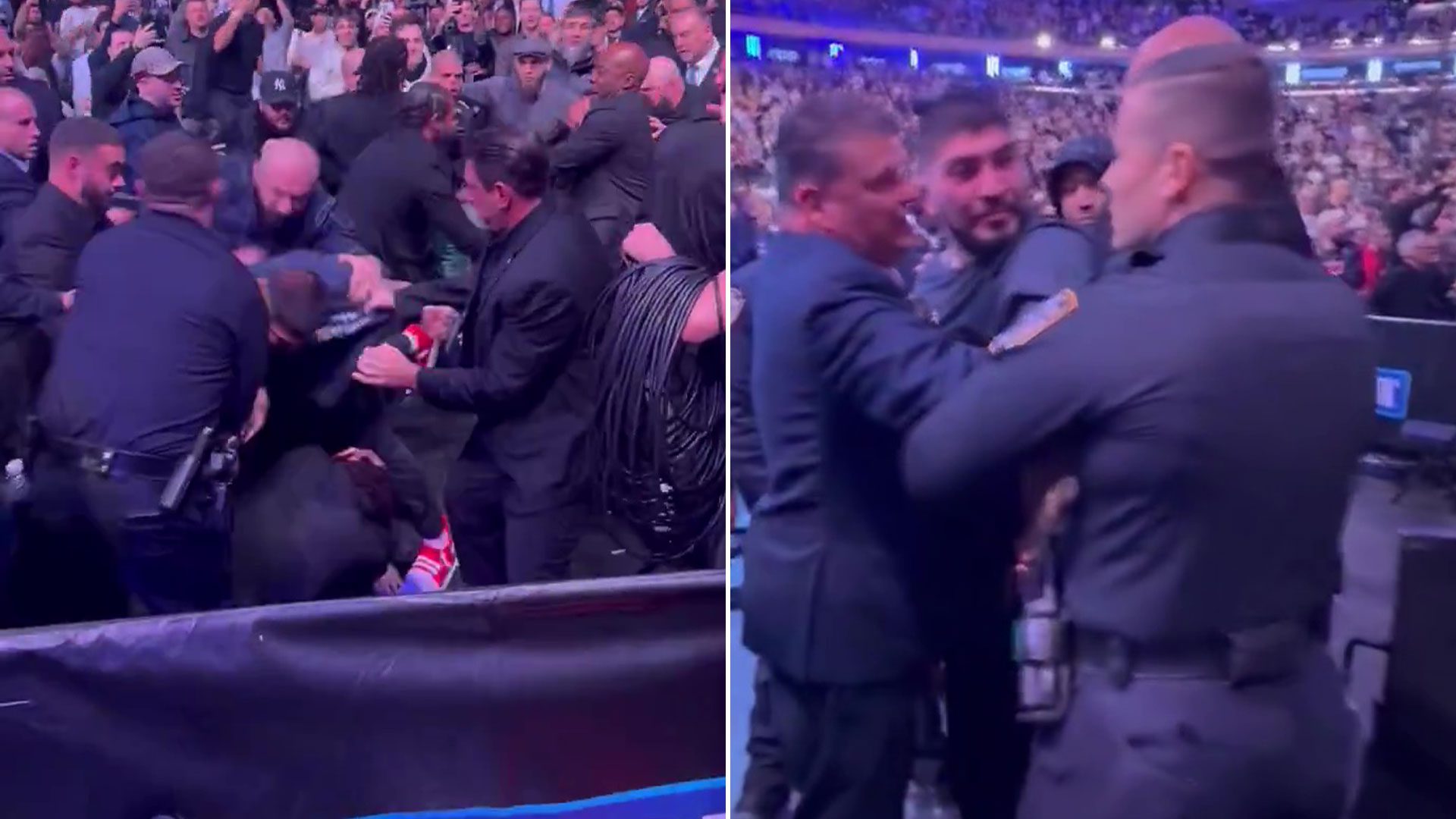 The brawl continued for almost five minutes as police and security intervened by trying to get between the camps.