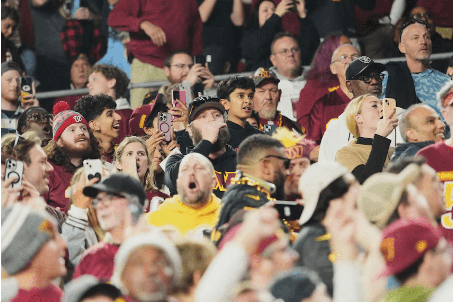 Before the game, Defense Secretary Pete Hegseth chatted with Mr Harris — the leader of the group that purchased the Commanders from Daniel Snyder for about $US6 billion in 2023 — and took part in an on-field ceremony with members of the military.