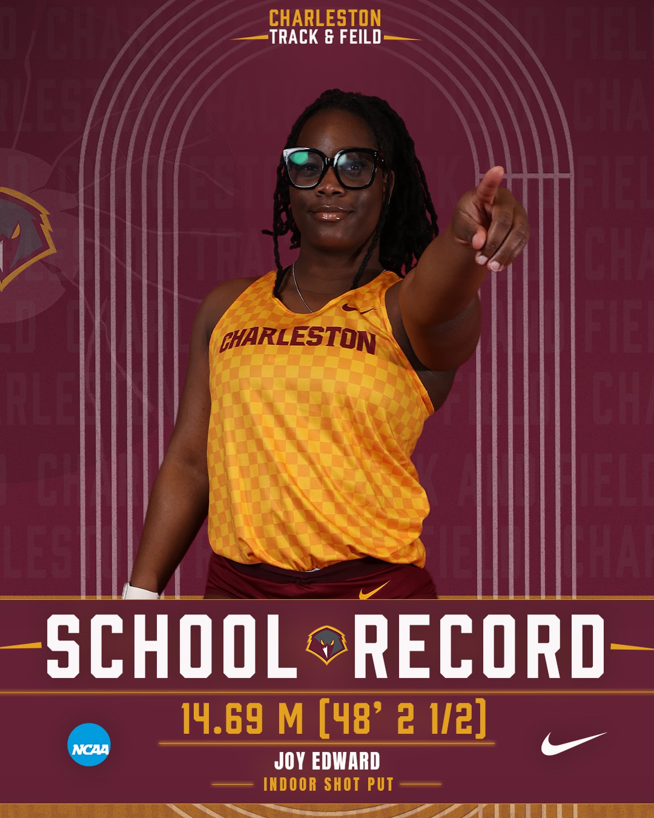 At the Akron AL Campbell Invitational, Joy Edward got a first-place finish and a school record in separate events at the Stile Athletics Field House in Akron, Ohio. An incoming transfer to the University of Charleston, Edward threw 14.69m for the school record in shot put, just six inches off her 2024 indoor national record. She then threw a personal-best 17.59m to win the 20-lb weight throw.