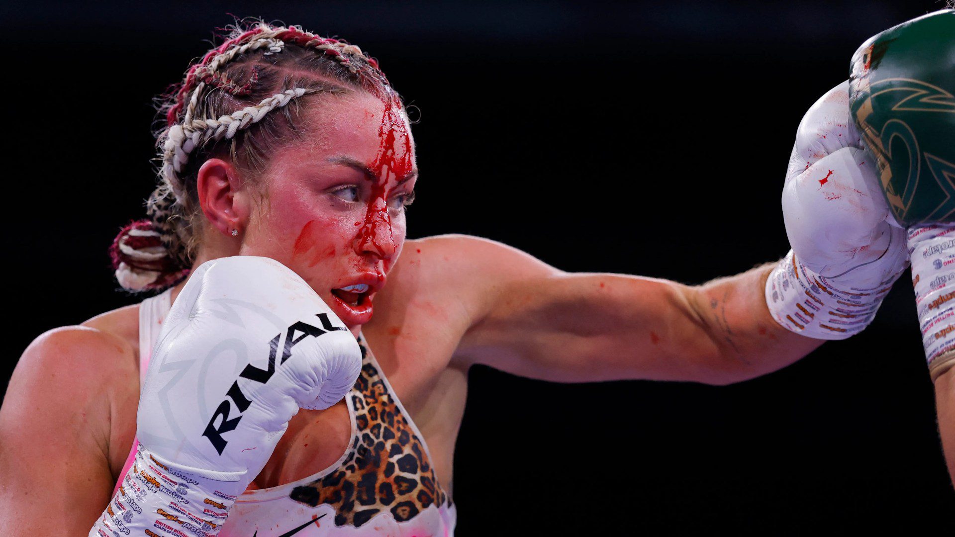 But the glamorous ace, a former model before turning to boxing, ended up covered in blood for her troubles.