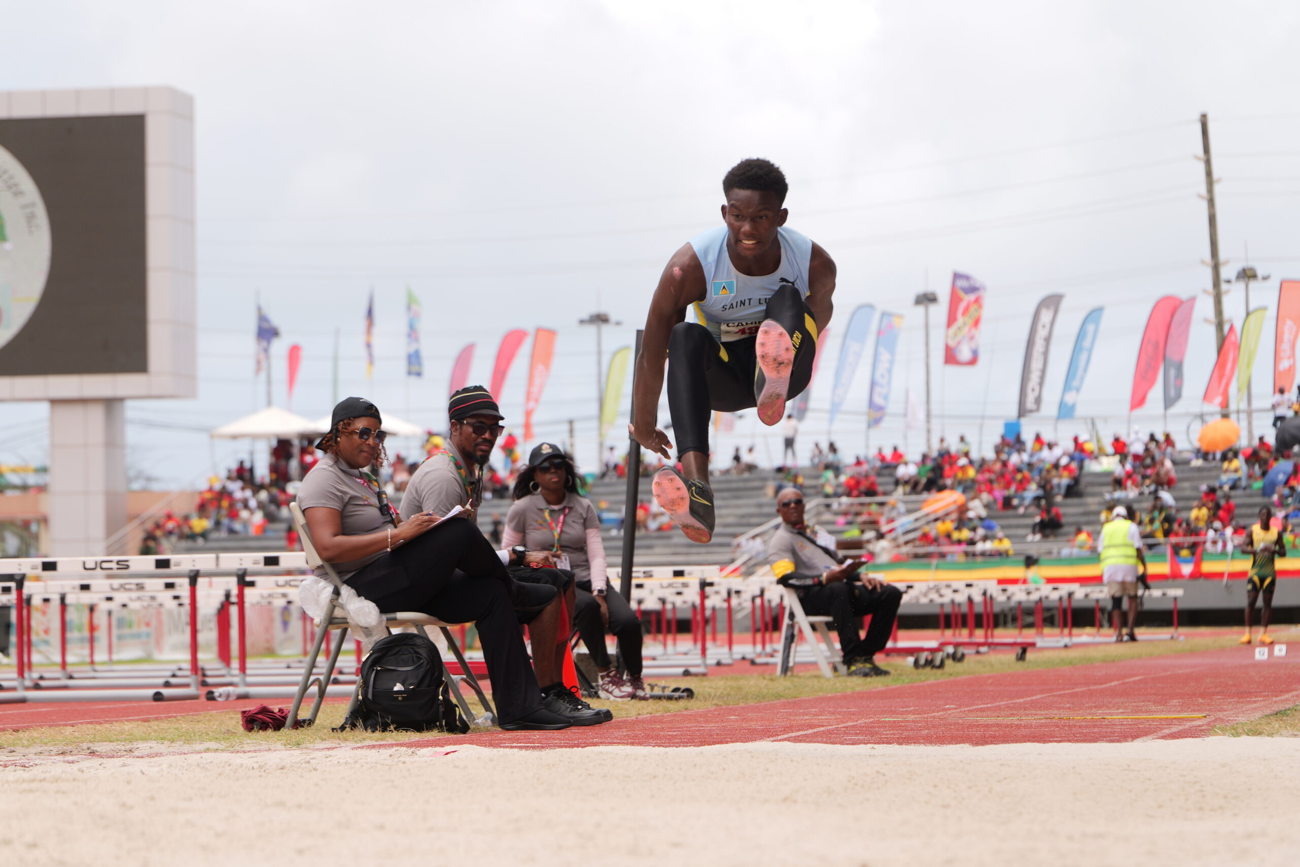 Saint Lucia’s Randall Monroe won a bronze medal in the Under-17 Boys’ Long Jump during an abbreviated opening session on the final day of the CARIFTA Athletic Championships in Grenada.