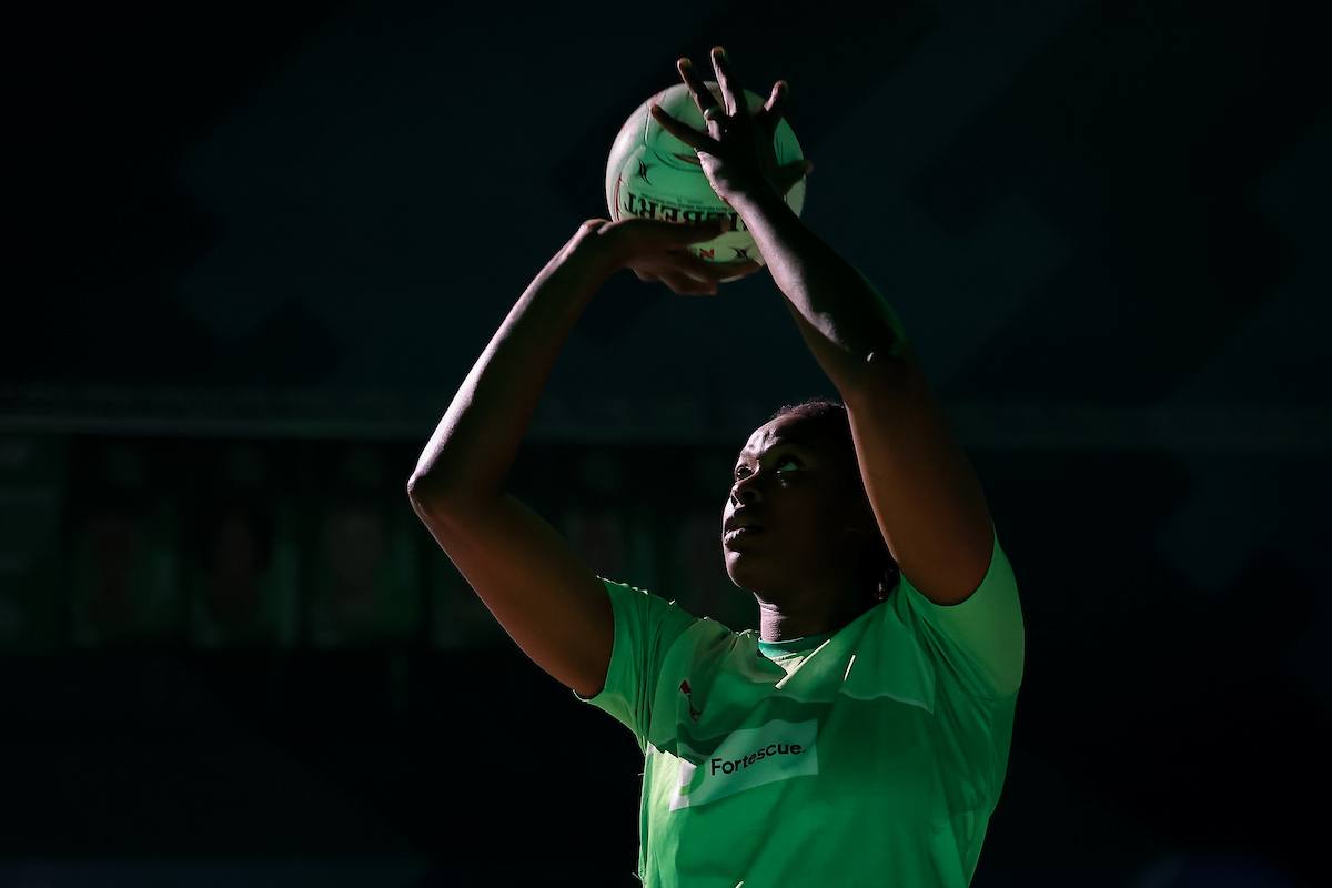 Despite being badly hit by injury, the pumped up Swifts were competitive all game, blurring the passing options and flying out to unsettle their opposition. In attack, Grace Nweke had an excellent game with 49 goals at 94%, forcing the defence onto her back and authoritatively pulling in lob after lob even when double-teamed. She was ably serviced by Grace Whyte who showed excellent judgement on the feed, with a game-high 31 goal assists. Maddy Proud played her biggest role so far this year – 57 minutes at centre without a turnover.