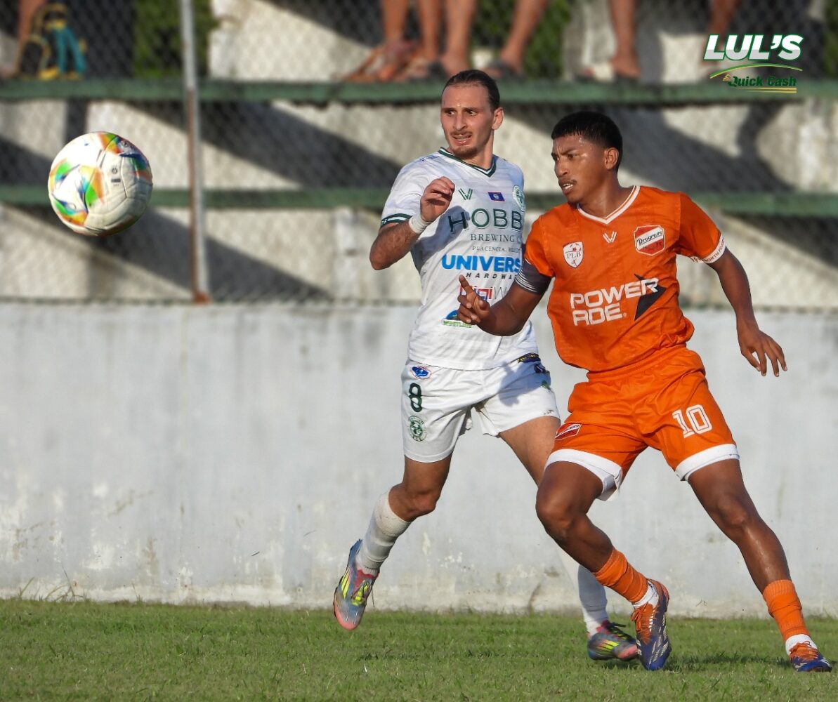 Progresso played a strong final in the 2025–2026 Opening Championship and were edged only 1–0 on aggregate by Verdes last December. In the photo, Progresso captain Andir Chi (10) battles for possession against Verdes’ Jose Burgos (8). Photo credit: Progresso FC / LUL’s Quick Cash