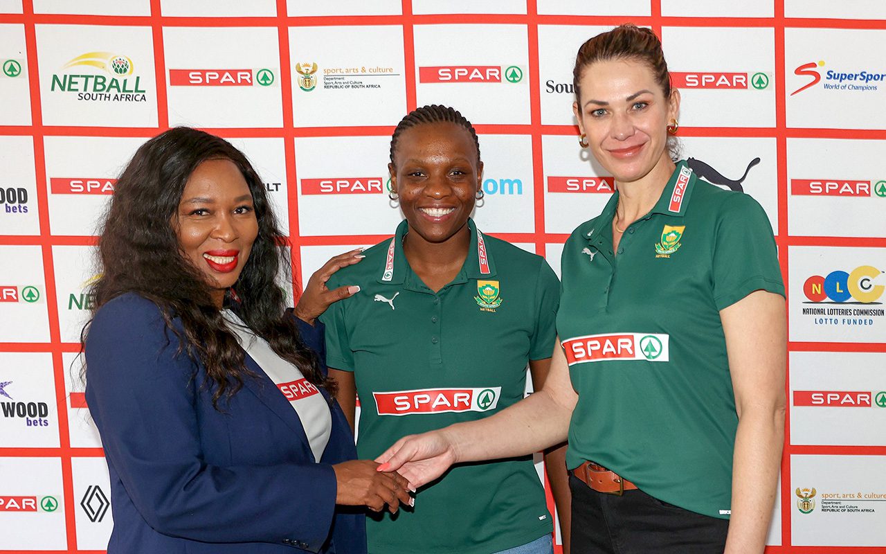Main Photo Caption: Netball South Africa President, Mami Diale (left) wishes Spar Proteas Head Coach Jenny van Dyk (right) and captain, Khanyisa Chawane, well ahead of their departure to Malawi on Friday 5 December to defend their African Netball Cup title there. All Photos: Reg Caldecott
