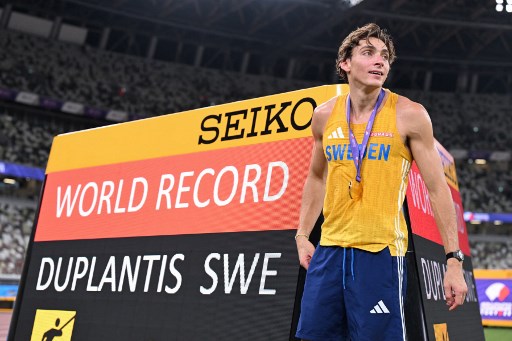 Gold medallist Sweden’s athlete Armand Duplantis celebrates his new world record in the men’s pole vault final during the World Athletics Championships in Tokyo on September 15, 2025. (Photo: AFP)