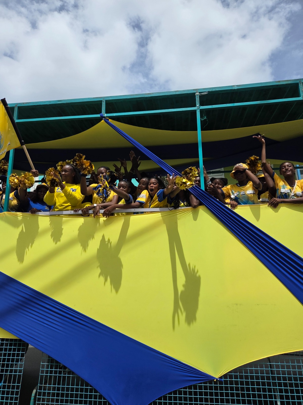 Urged on by the deejay on the music truck, students saved their loudest celebrations for the Crumpton Street area, where several dozen students of arch rivals Harrison College were seen observing the motorcade and cheering for their fellow students.
