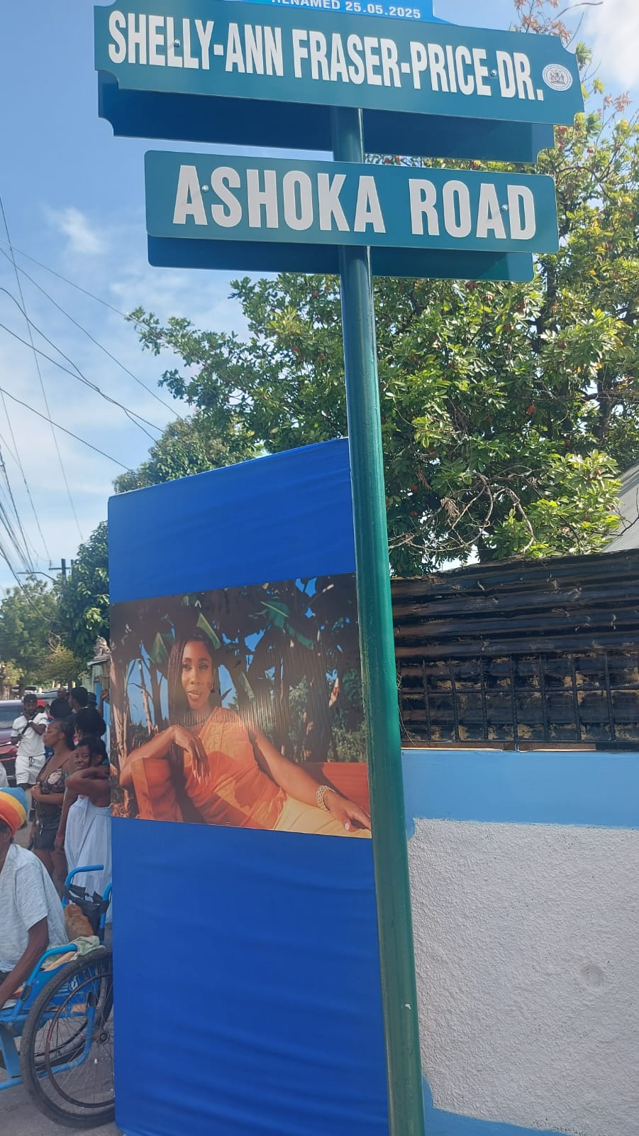 Ashoka Road, where Fraser-Pryce grew up, will now be known as Shelly-Ann Fraser-Pryce Drive following a renaming ceremony held by the Kingston and St Andrew Municipal Corporation (KSAMC).